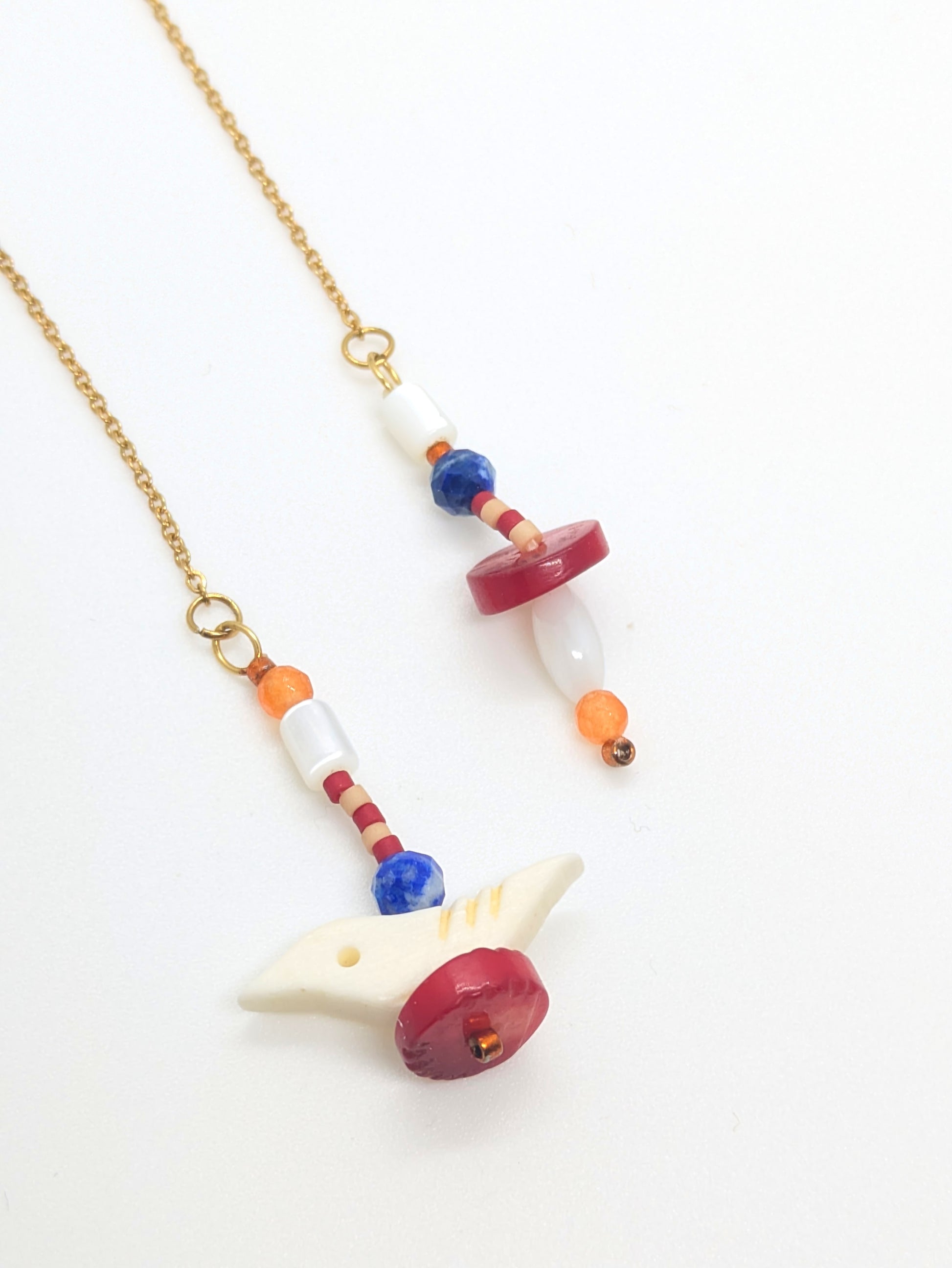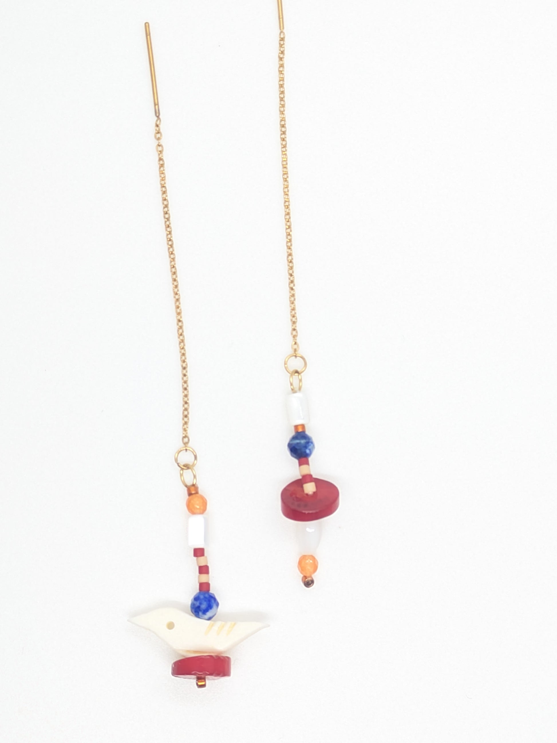 Boucles fils avec petits oiseaux sculptés en os, agathe, Lapis lazuli, corail, perles Miyuki